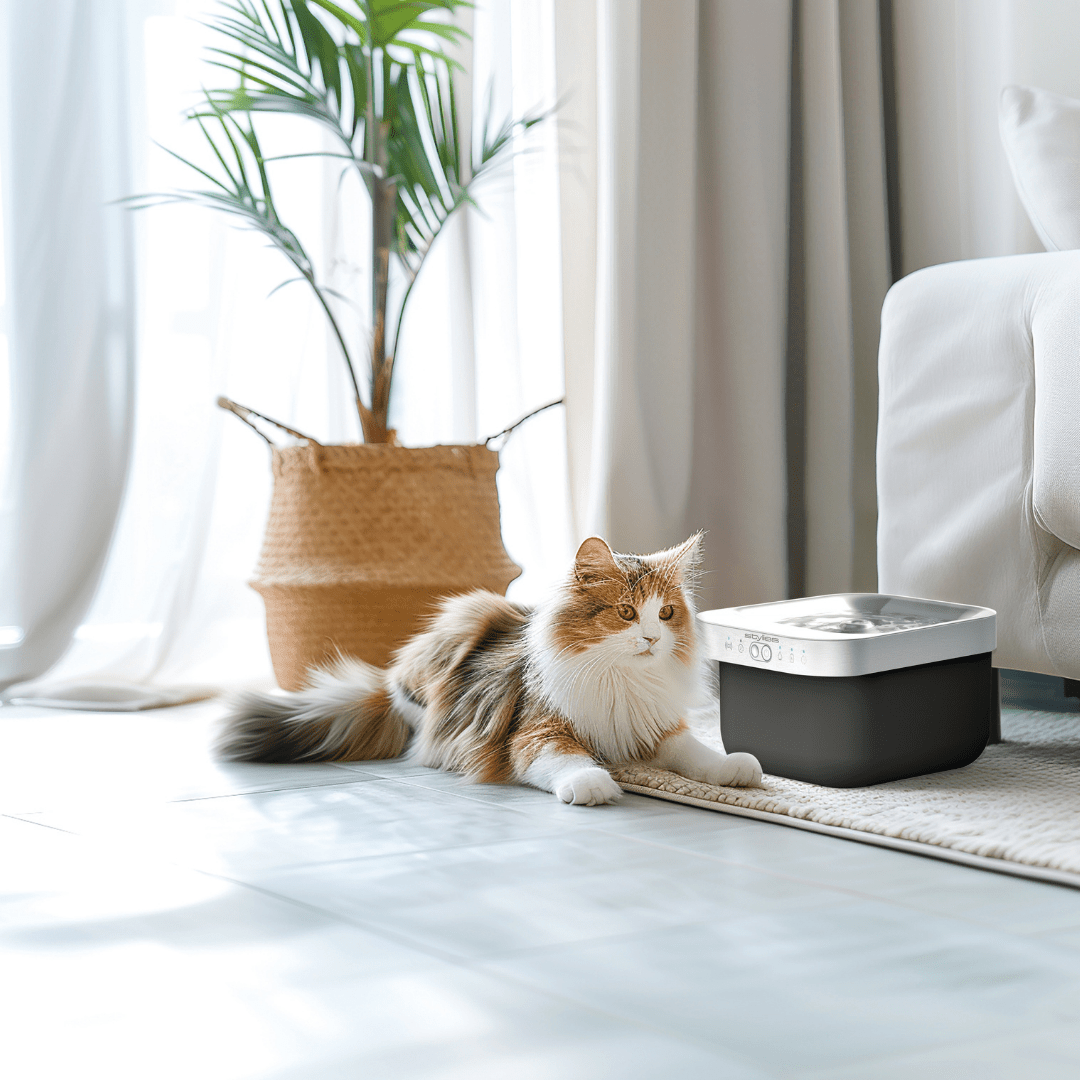 Grâce à son système de circulation d'eau silencieux et à son système de filtration en trois étapes, FONTANUS assure un approvisionnement constant en eau fraîche et propre.