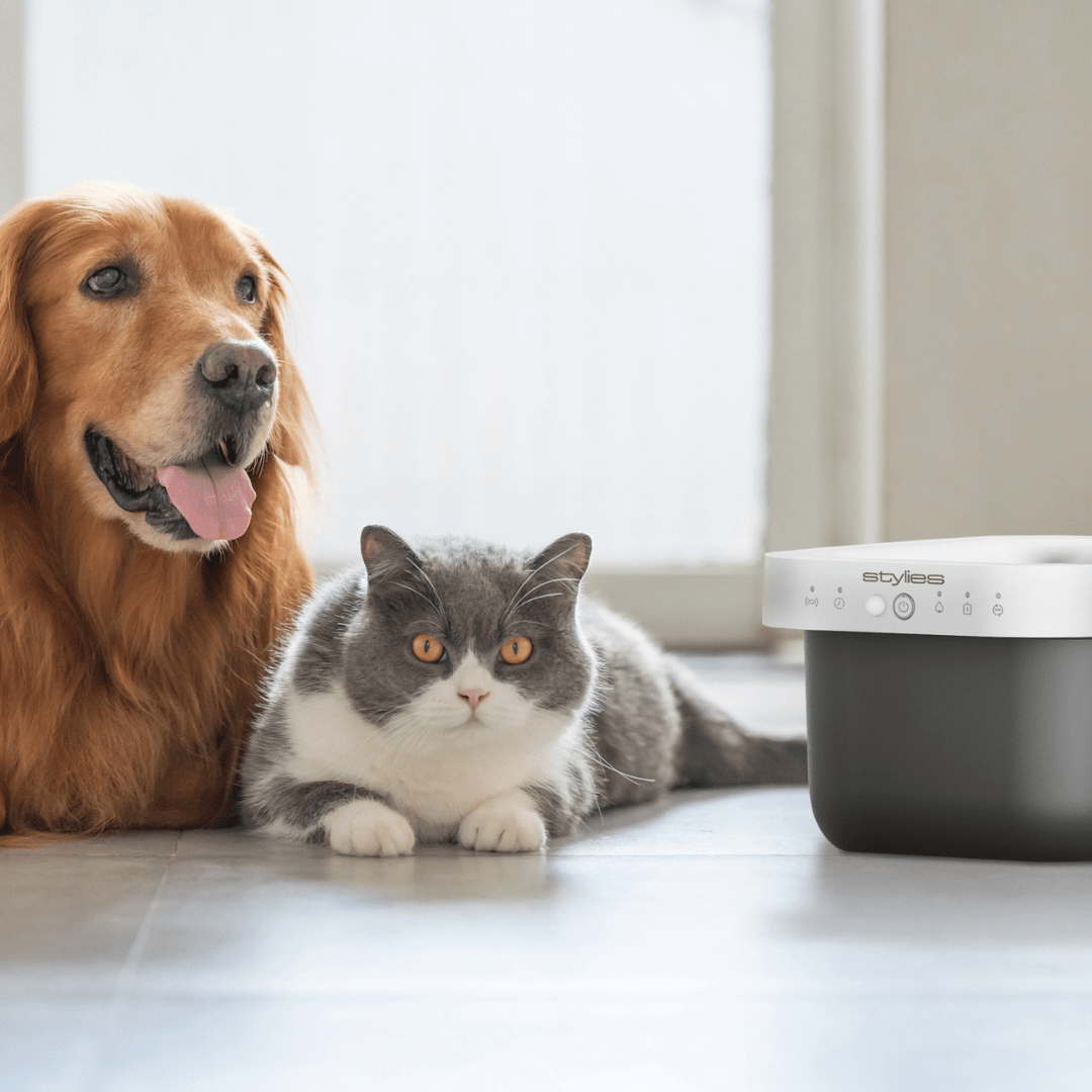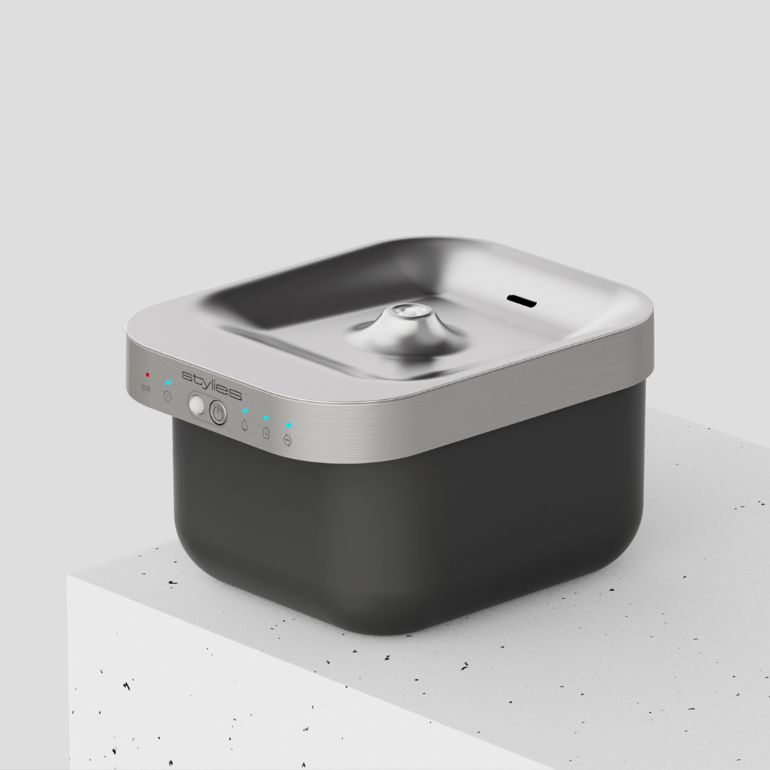La fontaine à eau sans fil Stylies FONTANUS allie confort d'hydratation, hygiène et design moderne. Conçue à partir d'une étude de marché approfondie et de visites dans des centaines de foyers avec animaux de compagnie, elle répond précisément aux besoins des familles d'animaux modernes, en assurant un approvisionnement en eau fiable et une intégration élégante dans votre intérieur.